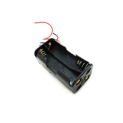 Battery holder for four AA cells arranged as two back to back two-cell holders with the leads are about 150mm long.