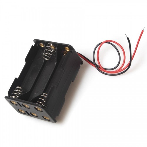 Battery holder for six AAA cells arranged as two back to back three-cell holders with the leads are about 150mm long.