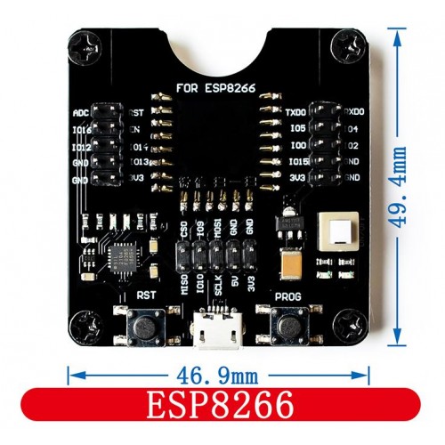 This board is suitable for firmware burning test of modules such as ESP-12S/12F/12E/07S/07. All IO ports have been exported and can be used as the minimum system development board or small batch burning fixture. The board supports firmware one-click download function, and added burn. Burn mode indicator (green light is connected to IO0) and serial communication indicator (green light).