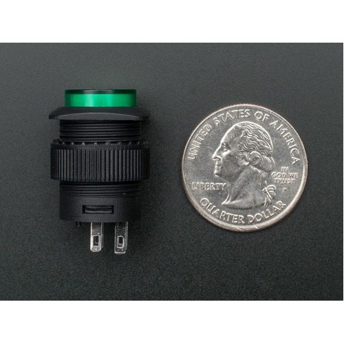 16mm Illuminated Pushbutton (Green Latching On/Off Switch)