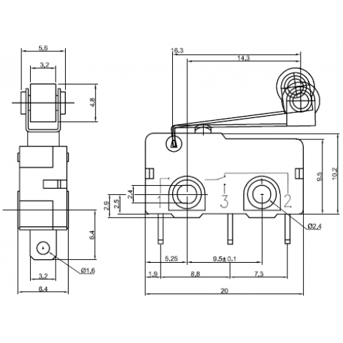 SPDT Snap-Action Switch with 16.3mm Roller Lever (3-Pin 5A)