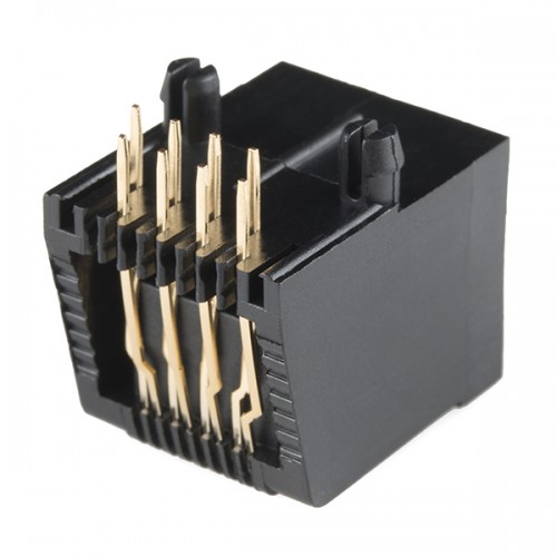 These are simple through-hole RJ45 sockets with PCB mounting posts. These 8-pin connectors are commonly used in conjunction with Cat5, Cat5e, and Cat6 Ethernet cables. Because Ethernet cable is so ubiquitous, these are awesome for projects where you need to string a lot of modules together over a distance.
