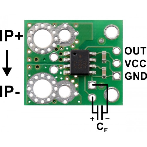 We sell a ±10A bidirectional version, a ±20A bidirectional version and a ±30A bidirectional version of this board, so you should consider adding your own distinguishing marks or labels if you will be working simultaneously with multiple versions. A white box is provided on the bottom silkscreen of the board to make labeling easier. You can also distinguish the versions by reading the text on the IC.